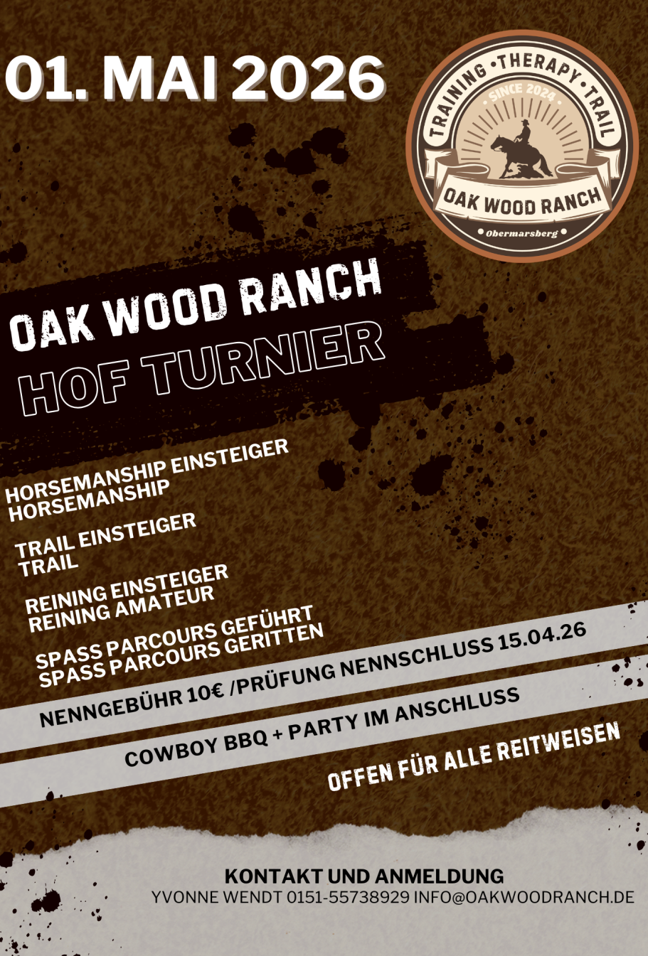 Anmeldung unter 0151-55738929 oder info@oakwoodranch.de